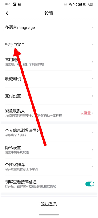 3、在设置界面,点击账号与安全,进入账号与安全页面。