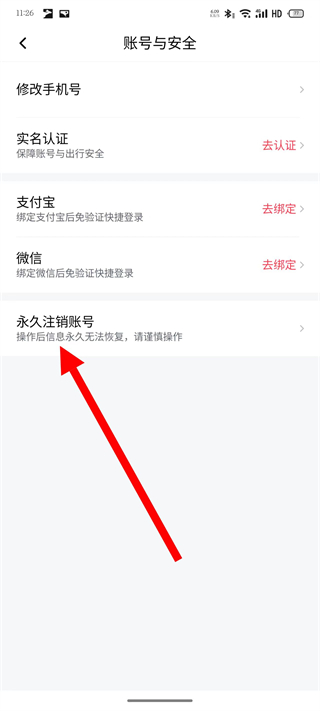 4、在账号和安全页面,点击永久注销账号,进入注销流程页面。