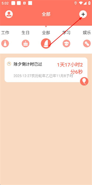 1、在计时应用首页点击右上角的加号按钮,弹出分类选择菜单。