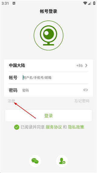 2、在账号登录页,点击注册按钮,进入注册页面。