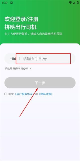 2、在登录页面填写手机号,勾选协议后,点击下一步获取验证码。