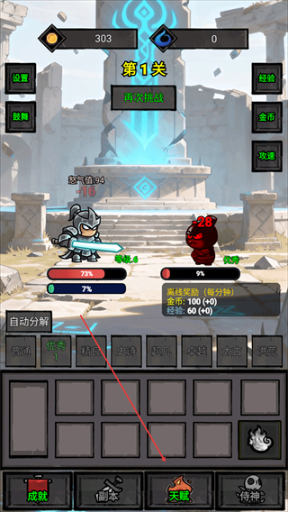 2、放置+策略双重核心玩法,支持无尽关卡自动推进,解放双手享受休闲挂机体验,同时融入自由锻造等深度策略内容,每一次锻造配方选择、侍神阵容搭配都影响战力上限。