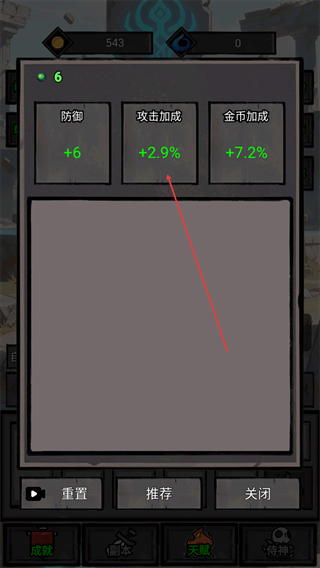 4、战斗后进入属性界面,选择攻击加成等属性提升,强化角色战力。