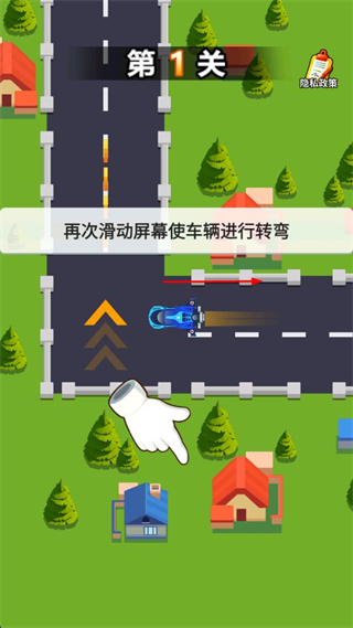 2、滑动屏幕使车辆向前行驶,按照提示再次滑动屏幕,让车辆完成转弯动作。