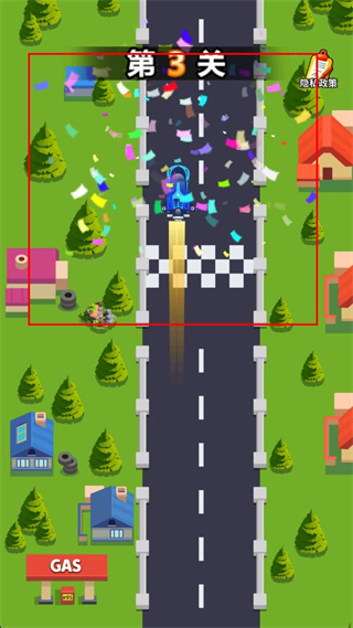 4、持续滑动屏幕控制车辆前进,让车辆抵达带有黑白格的终点区域,完成当前关卡挑战。