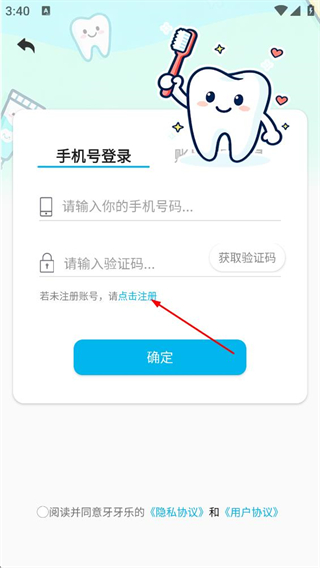 2、在手机号登录界面,点击注册的选项,进入账号注册页面。