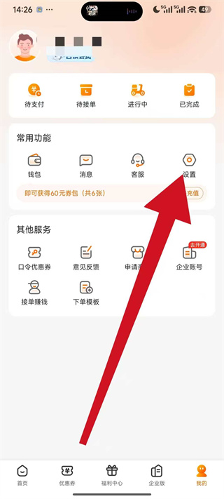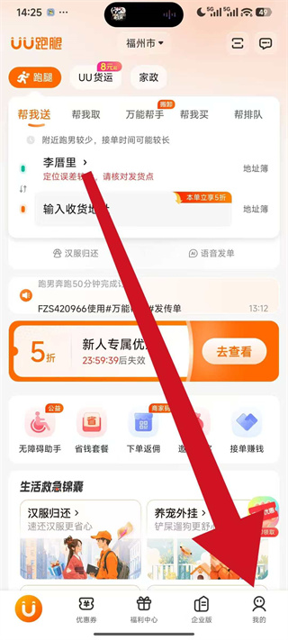 1、打开UU跑腿,点击底部导航栏的我的,进入个人中心页面。
