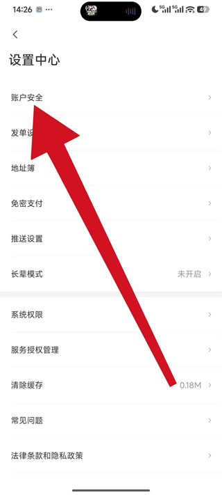 3、在设置中心页面选择账户安全,进入账户安全操作页面。