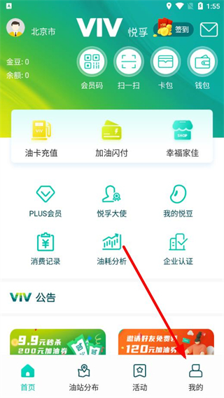 1、在悦孚加油app,点击底部我的按钮,进入我的页面。