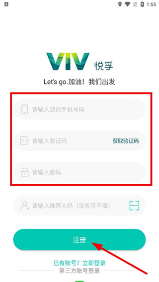 4、在页面依次填写手机号、获取验证码、设置密码,完成后点击注册即可完成账号注册。