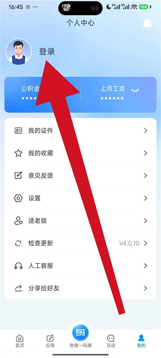 1、打开我的常德,点击底部导航栏的我的选项,进入个人中心页面。
