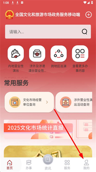 文旅市场通app是文化和旅游部打造的官方政务服务移动端,核政务服务方面,支持营业性演出、旅行社设立等多领域行政审批与备案,可在线申领电子证照、查询办事进度,还能获取权威政策资讯与行业培训,文化服务涵盖新闻动态、文旅问答、文化场所查询及活动预约,丰富群众精神生活。