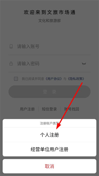 2、在该界面,找到用户注册选项并点击,弹出注册账户类型选择窗口。