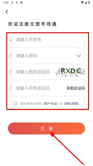 4、在页面依次填写手机号、设置密码,输入验证码,勾选协议后,点击注册完成账号注册。