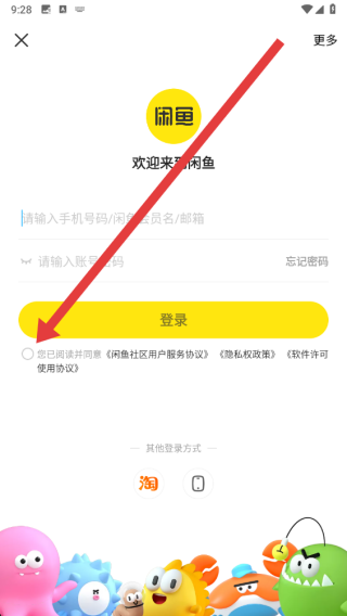 3、在成功切换为密码登录方式后,在登录前需先点击按钮勾选同意。