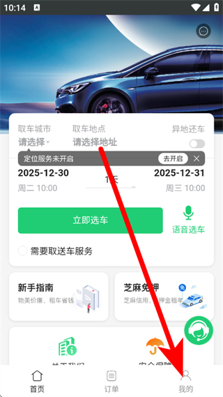 1、在立行租车首页,点击底部我的选项,进入个人页面。