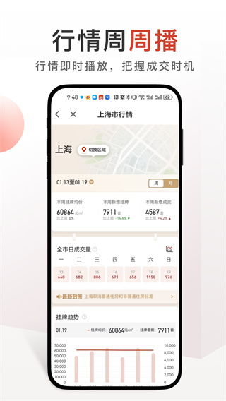 提供每周更新的专业市场行情报告与分析,深度解读区域房价走势与政策影响,为用户在买进或卖出时提供精准的数据参考与决策支持,把握最佳时机。