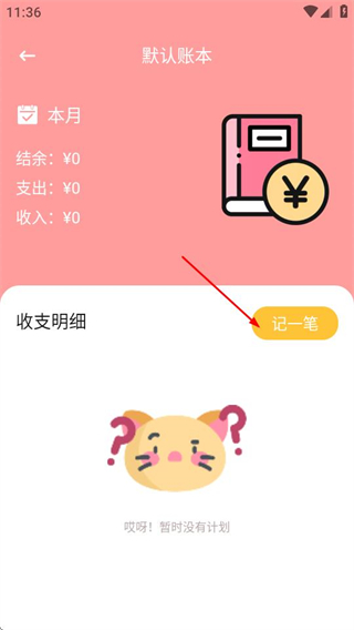 2、在账本页面,点击记一笔按钮,可进入收支记录编辑页面。