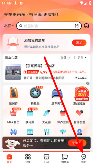1、打开京东养车,点击底部导航栏的我的,进入个人中心页面。