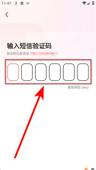 4、将收到的短信验证码依次填入验证码输入框,完成后即可完成账号登录。