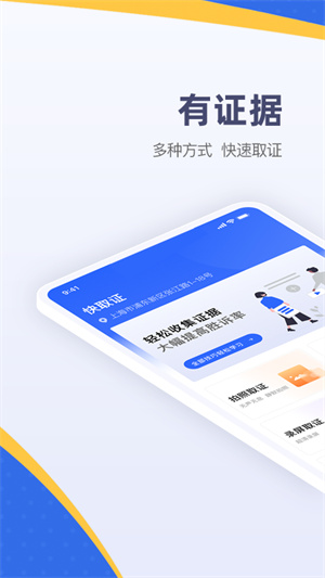 快取证是一款安全取证软件,用户拍照、录像、录音、截屏、网页等取证方式来取证,轻松手机证据提高法律效率,是每个小伙伴手机上的免费证据管家,多样的服务在线提供,让大家可以放心取证,通过对应的服务快速取证来获得对应的信息。