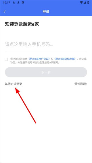 1、在航运e家登录页面,点击其他方式登录选项,弹出登录方式选择弹窗。