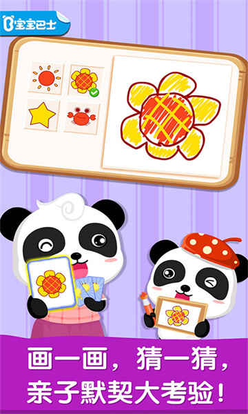 宝宝画妈妈猜是由宝宝巴士推出的一款亲子互动手机游戏,在游戏中宝宝作画有两种方式,一种是按照参考图来描绘,还有一种是自己创造,非常锻炼宝宝的绘画能力以及想象力,最主要的是有亲子互动,增强了游戏的趣味性,喜爱的朋友赶快下载体验吧!