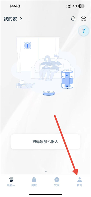 1、打开科沃斯机器人APP,在底部导航栏找到我的选项并点击,进入我的页面。