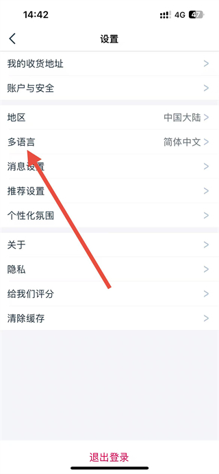 3、在设置页面中,找到多语言选项并点击,进入语言选择的具体页面。