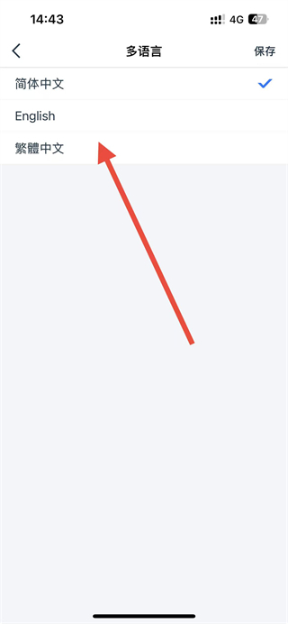 4、在多语言页面,选择想要切换的语言,再点击保存即可完成语言切换。