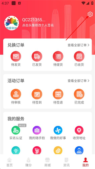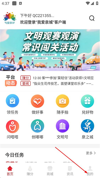 1、在我爱泉城首页,点击底部的我的选项,进入个人页面。