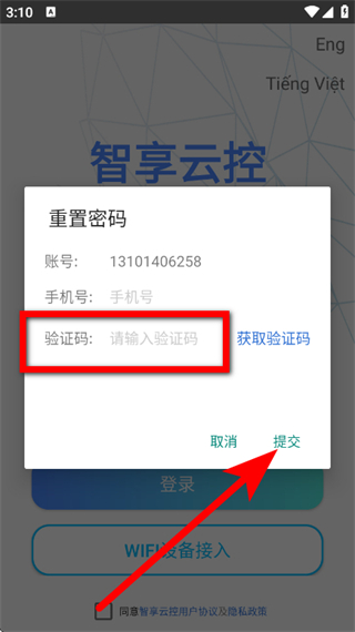 1、在智享云控登录页面,点击忘记密码,弹出重置密码弹窗。