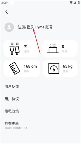 2、在个人信息页面,点击注册登录Flyme账号区域,可进入账号登录页面。