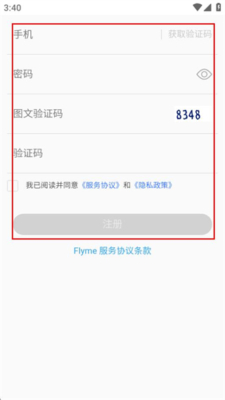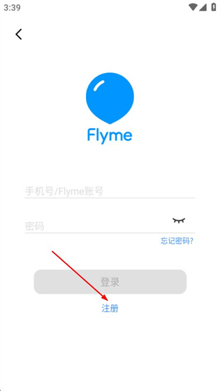3、在登录页面,点击注册选项,可进入Flyme账号注册页面。