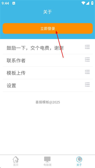 2、在关于页面,点击立即登录按钮,可进入用户登录页面。