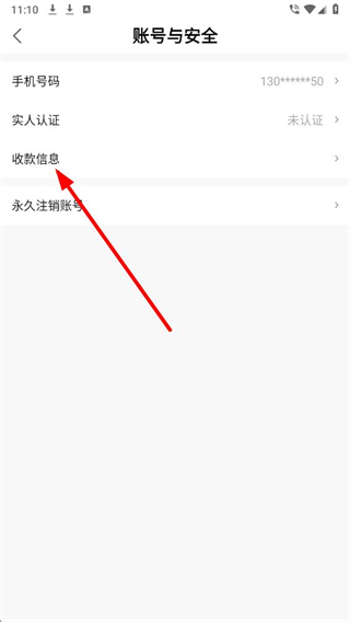 3、在账号与安全页面,找到收款信息选项并点击,进入账号管理界面。