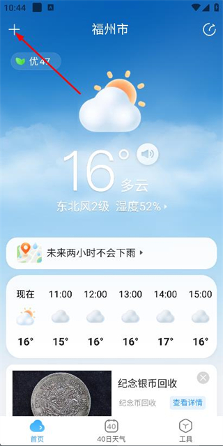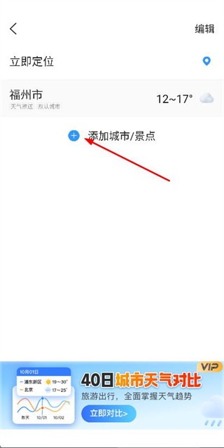 1、在首页点击左上角的加号按钮,进入城市管理页面。