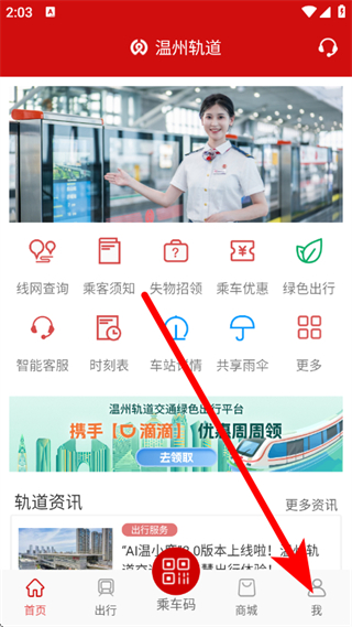 1、在温州轨道页面,点击底部我的,进入个人页面。