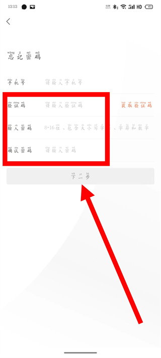 6、在输入框输入验证码,设置新密码,完成密码重置。
