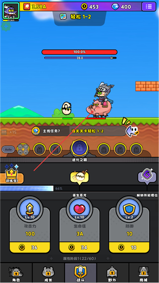 3、继续战斗,触发敌方变身,持续攻击敌人,推进关卡进度。