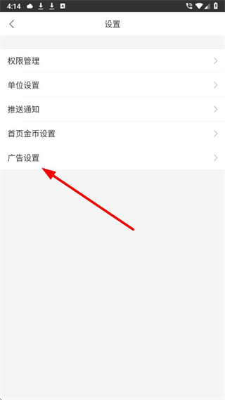 3、在设置页面中,找到广告设置选项并点击,进入广告设置页面。