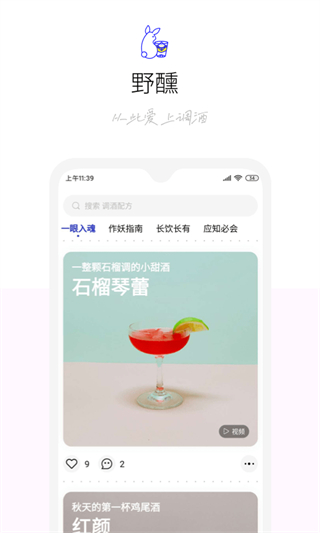 野醺是一款以短视频为载体、专注于鸡尾酒自制技巧教学的创意生活平台,旨在通过直观易懂的影像语言,手把手引导新手入门调酒艺术,该平台将复杂的调酒流程拆解为连贯的步骤短片,并配以详细的技巧讲解与经验分享,帮助用户快速掌握从工具使用到风味调配的核心技能。