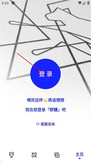 1、进入野醺后,点击底部的主页选项,可进入个人主页相关页面。