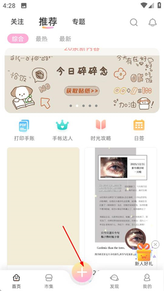 1、进入首页后,点击底部的加号按钮,可展开内容创作选项菜单。