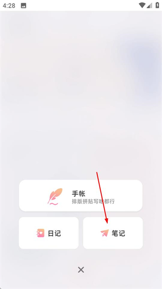 2、在创作菜单中,点击笔记选项,可进入图片选择页面。