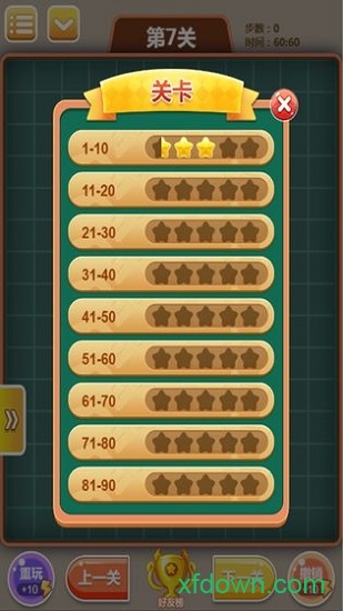 切换关卡:可通过“上一关”“下一关”“上一未过关”“下一未过关”切换