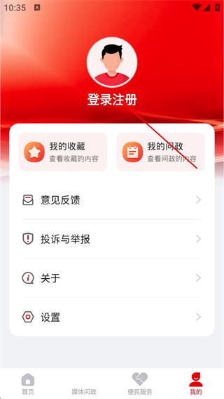 3、在个人页面,点击登录注册区域,进入湘西融媒的登录界面。