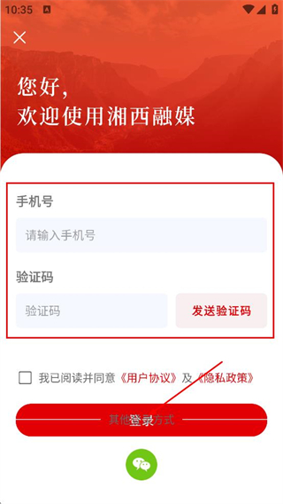 4、在登录界面,填写手机号,填写对应验证码,完成登录操作。