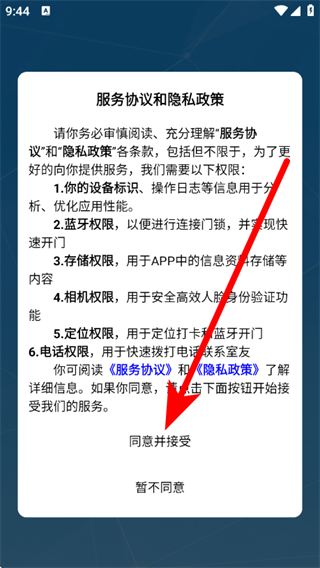 1、打开云莓智能,在弹窗中点击同意并接受,进入首页。
