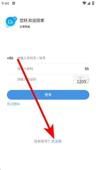 3、在登录页面中,点击去注册,进入注册界面。